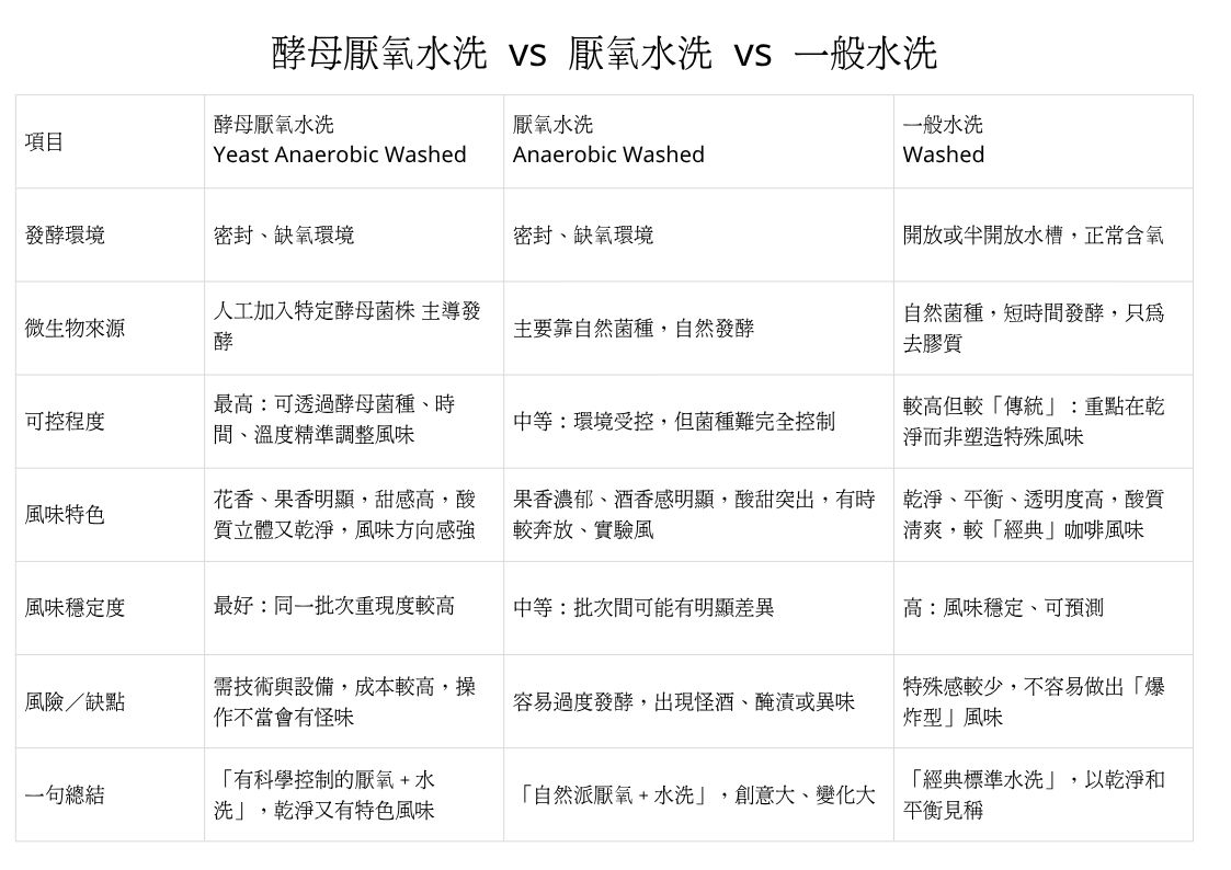 處理法:厭氧發酵水洗 (Yeast Anaerobic Washed)
